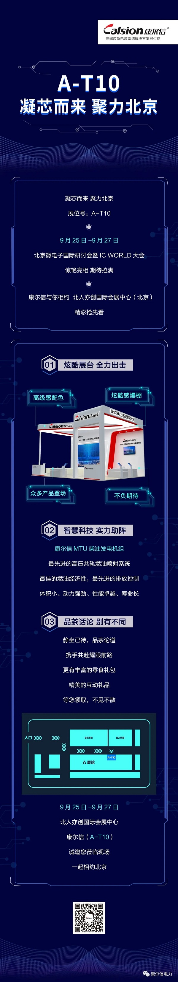 9月25日-27日,2023北京微電子國際研討會暨IC WORLD大會,將在北人亦創(chuàng)國際會展中心盛大舉辦,康爾信電力此次攜柴油發(fā)電機組,搭配專業(yè)的服務(wù)與領(lǐng)先的技術(shù),亮相展位A-T10,真誠地期待您蒞臨現(xiàn)場,一起相約北京,共探芯途。